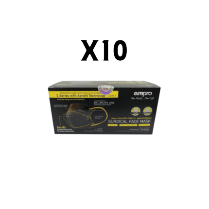 Empro Aerofit Tech ASTM Level 3, 3 Ply Surgical Face Mask – Black (50’s) (10 Units)