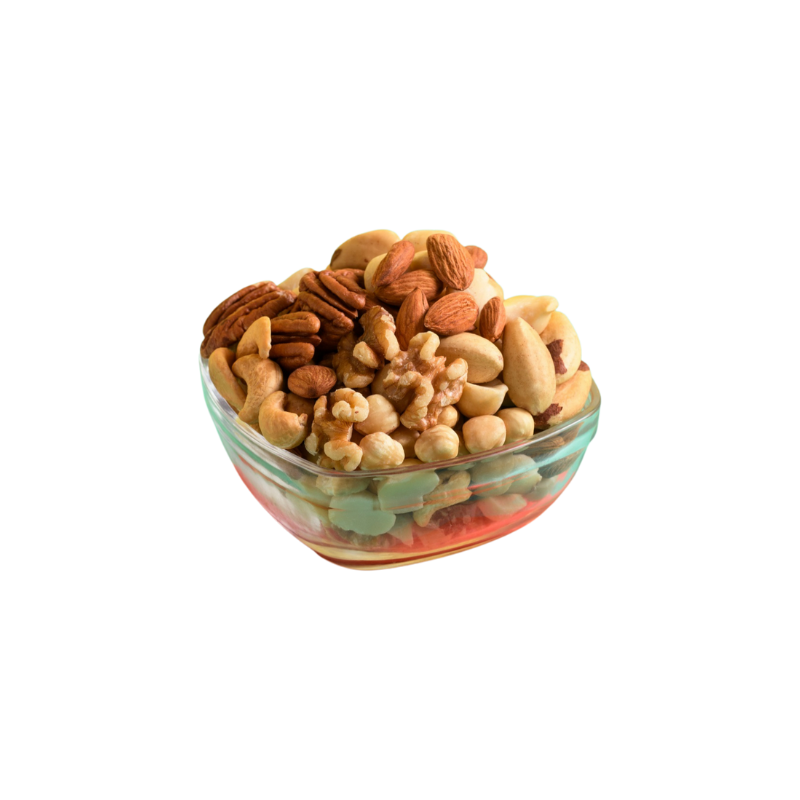 - Premium mix of almonds, cashews, walnuts, and pecans.